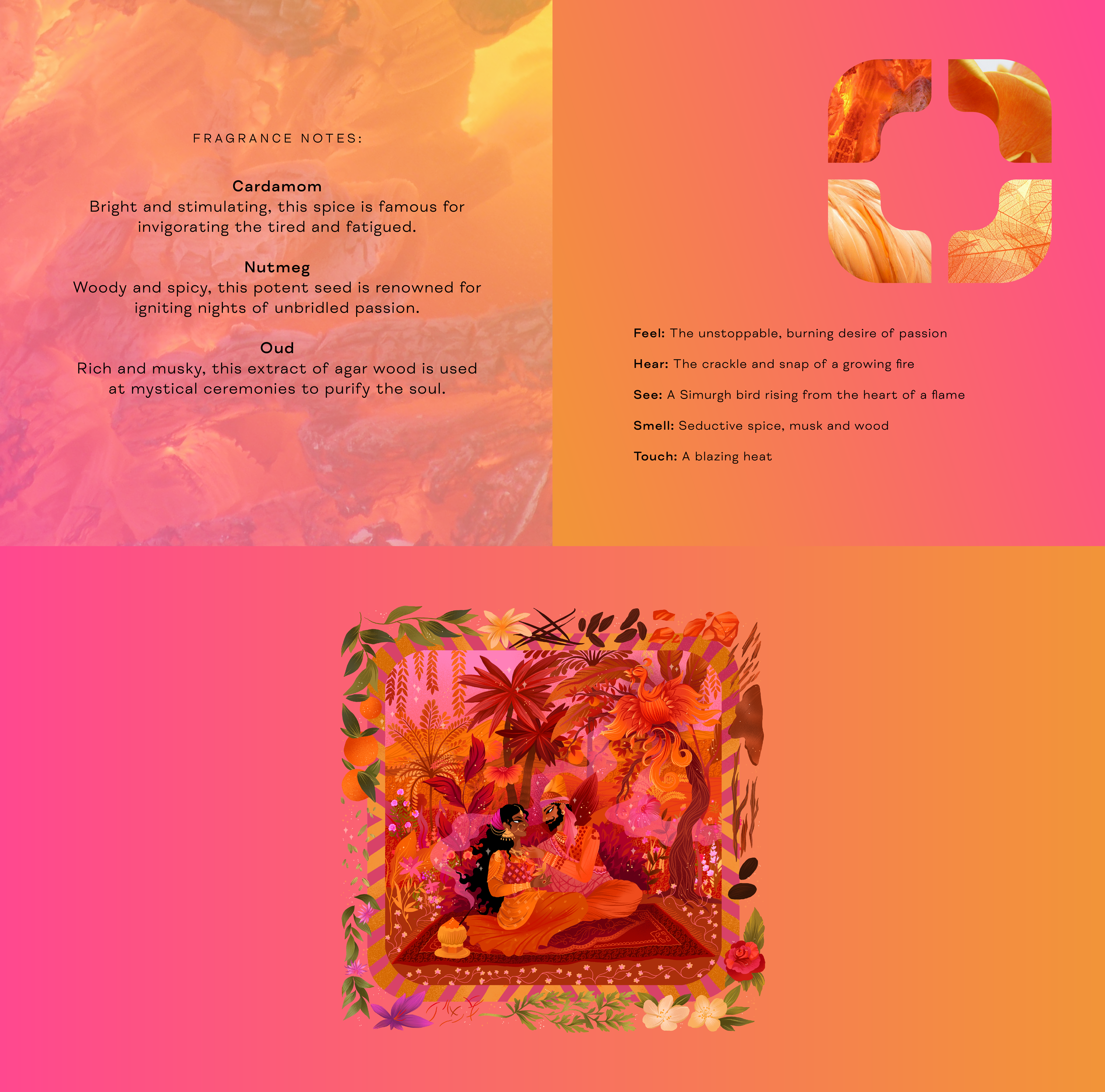 Good things come in fours, just like the elements that guide our current collection: water, earth, fire, and air. But in the world of Parudeesa, four is more than a number, it is a sacred belief. Inspired by the ancient Indo-Persian Chaharbagh: the four-part garden is believed to mirror paradise. At the heart of these gardens was a fountain, a source of energy and renewal. It is the luminous centre from which everything flows. Each element holds a realm of its own - layered with meaning, memory, and scent. Symbols drawn from Indo-Persian myths are etched into every world, serving as keys to their hidden truths. These sacred emblems help transport you, unlocking each realm through story, spirit, and sensory ritual. With fragrances once reserved for gods and royalty, and verses whispering ancient poetry, every quadrant becomes a portal. Enter the garden. Choose your element. Let the symbols guide your journey into the Realm of the Senses.